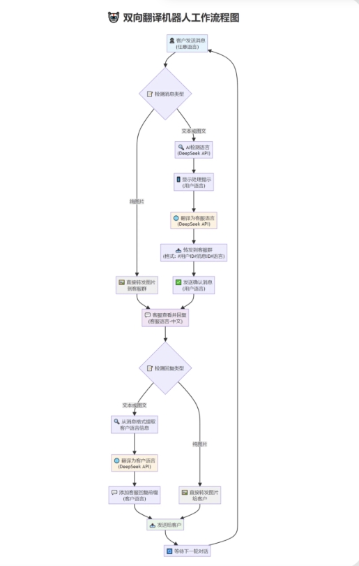 2.将客户消息翻译为客服配置的指定语言,不管客户消息是哪个国家的语言,只要是deepseek能识别的语言都可以。